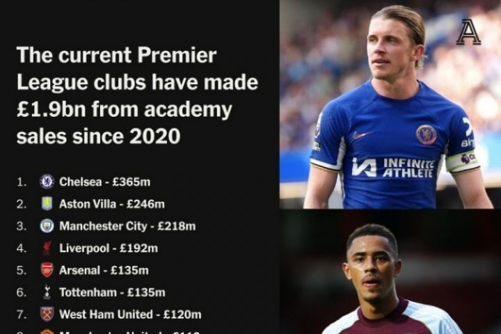 体育资讯08月22日讯 TA统计了自2020年以来,英超20队的青训球员出售情况,切尔西3.65亿断档第1。