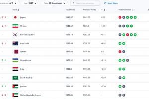 FIFA排名亚洲前十: