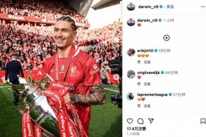 努涅斯在INS上晒出了自己上赛季手捧英超冠军的图片,写道:“感谢利物浦,3年之后是告别的时候了,那些记忆都是难以忘怀的,将永存在我的脑海中。”